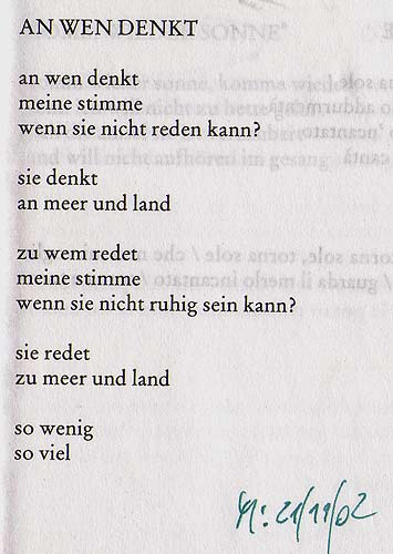 von Meer und Erde". Sollte mich jemand fragen, wozu denn Lyrik gut sei, wäre
