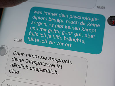 psychischen Störung zu kassieren. Mir wurde professionell Hilfe empfohlen. Man hätte sich natürlich auch mit meinen Argumenten