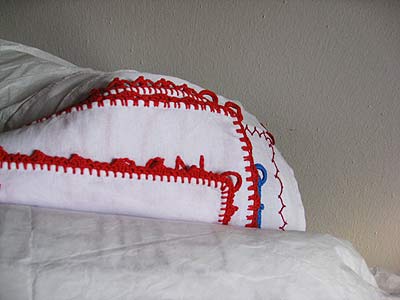 Protic brachte nun auch eine handliche Rolle von Stoffstücken mit, ein luftiges