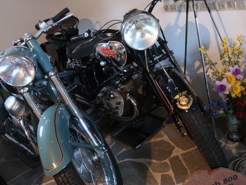 Rechts: Puch 800 (Vierzylinder V) neben einer Victoria V 35