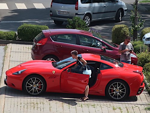 Plötzlich ein Ferrari California mitten im Gewusel, das