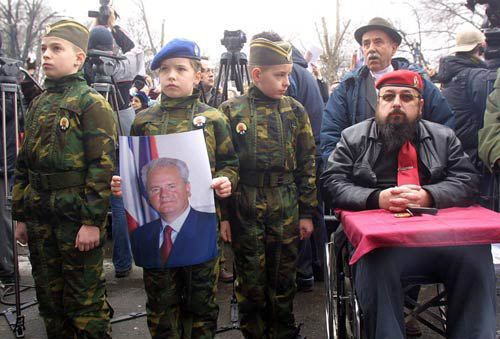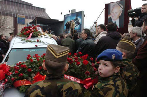 during the memorial service ahead of Milosevic's funeral in Pozarevac...